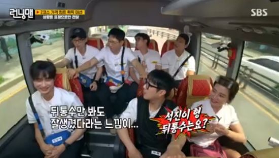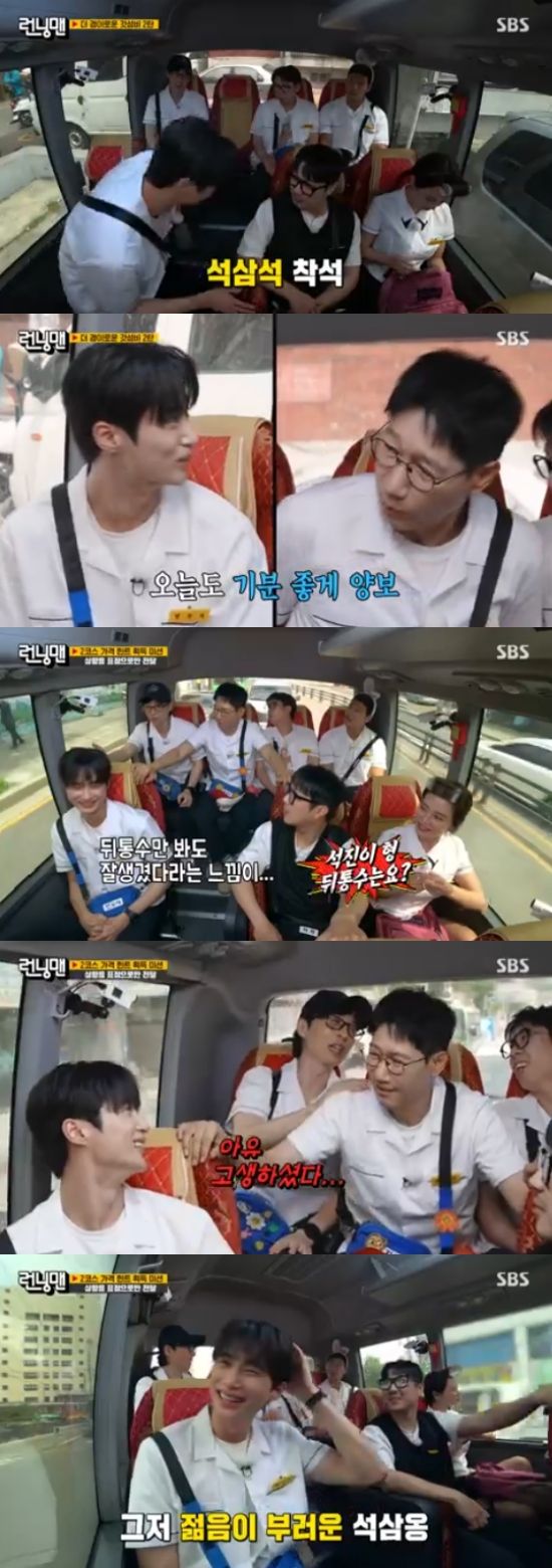 이동을 하면서도 변우석을 향한 '런닝맨' 멤버들의 애정을 계속됐다. '런닝맨' 형들은 변우석에게 지석진 전용 자리에 앉으라고 했고, 아무 것도 모르는 변우석은 형들이 시키는대로 했다.