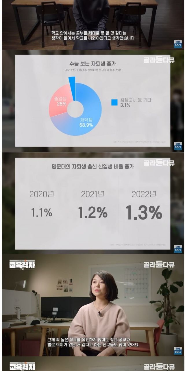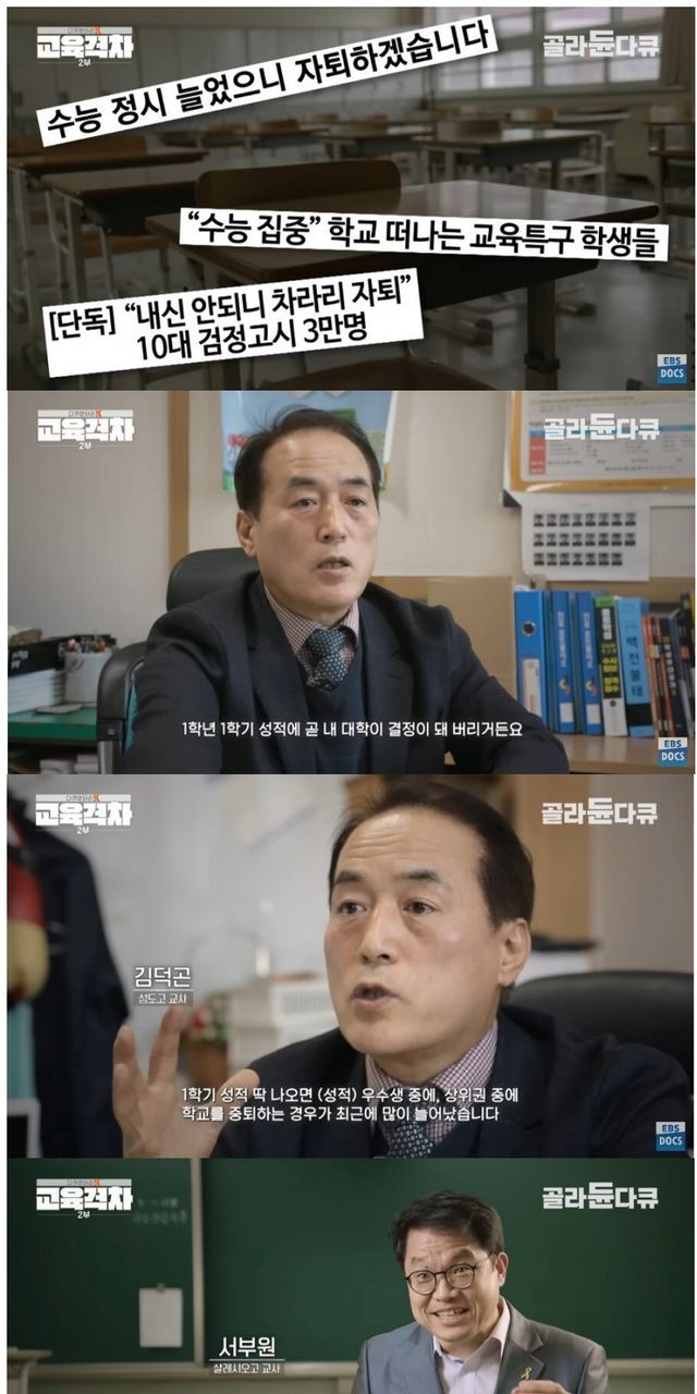 자퇴하는 연령은 점점 어려져서 중학생 사이에서도 자퇴가 나오는 상황이라고