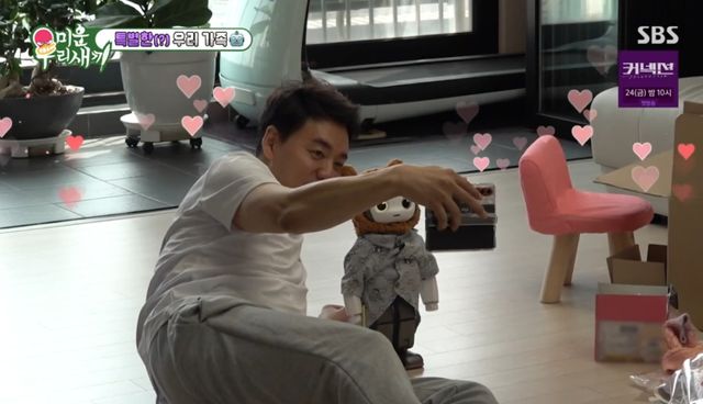 김승수가 기상하자 어딘가에서 들리는 "아빠"라는 목소리에 스튜디오는 모두 놀랐다. 알고 보니 AI 로봇을 입양한 것.