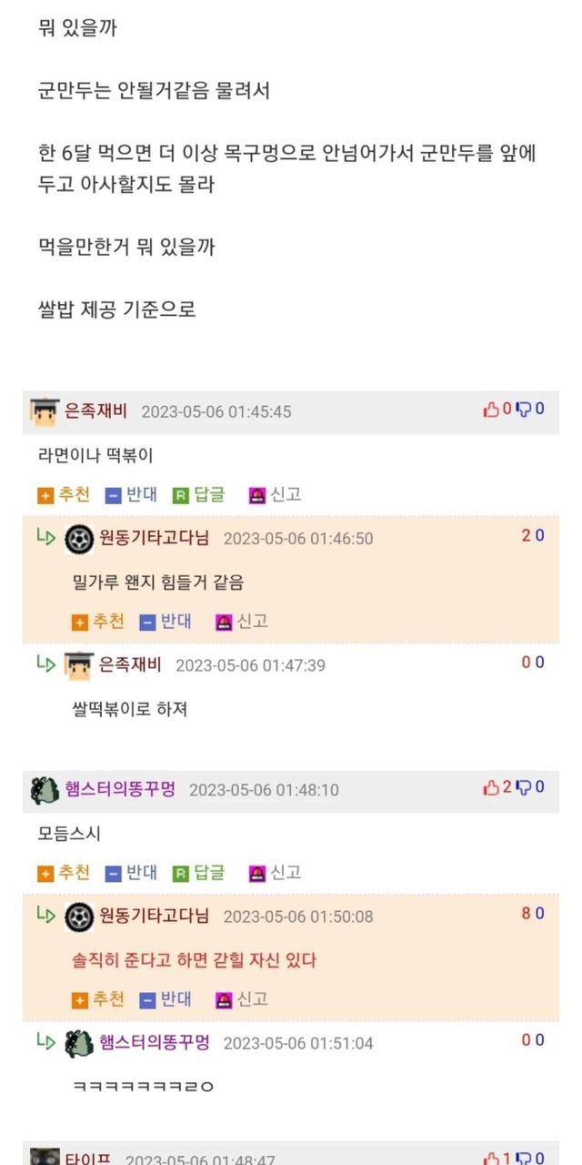 올드보이처럼 15년 먹을만한 음식 뭐가 있을까?ㄷㄷㄷ