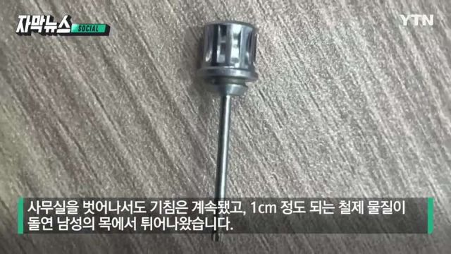 1. 한 사무실 남성이 통화를 받는데 기침을 매우 심하게함 주변 동료들도 걱정되서 바라봄 그런데 목에서 무언가 나옴 1cm가량의 쇳덩이