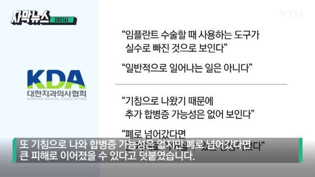 2. 의심되는 상황은 하루전날 받은 수면 임플란트 수술, 병원은 응? 나왓으니 문제 없는거 아닌가요~ 라함, 치의협은 일반적인 상황이 아니라는 입장