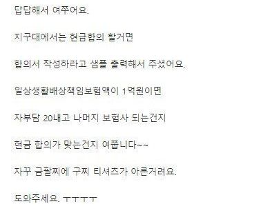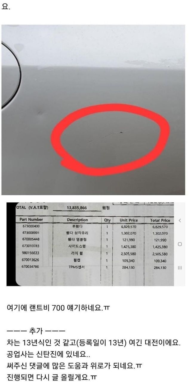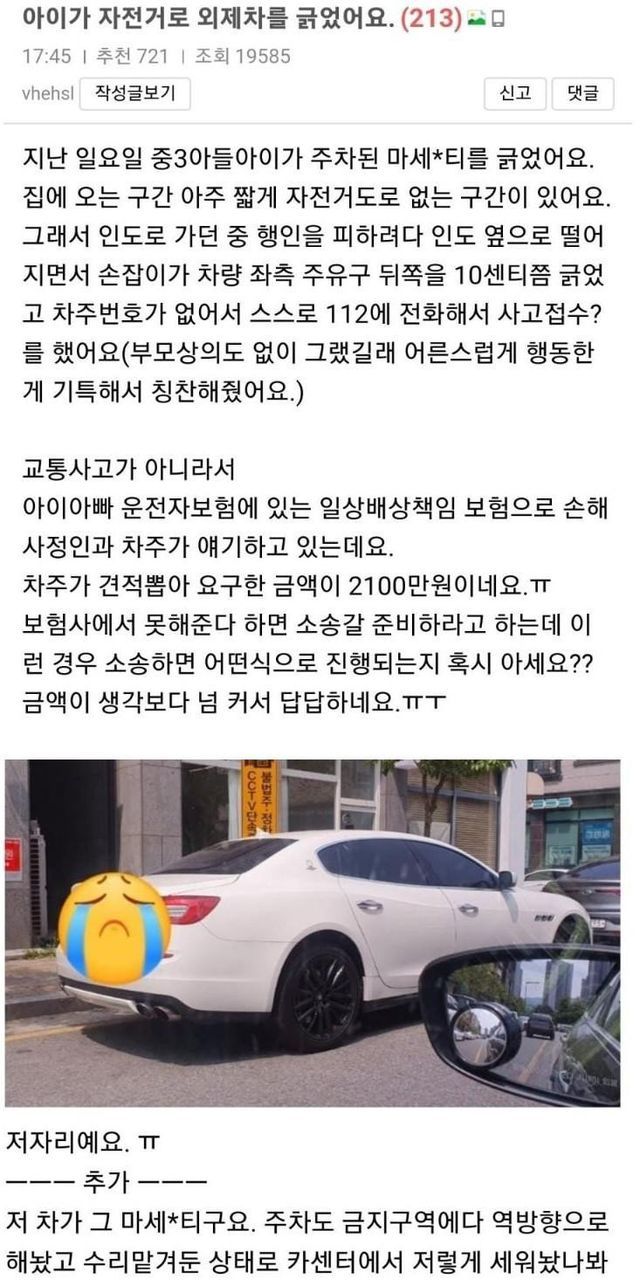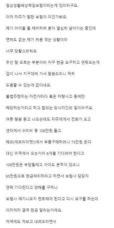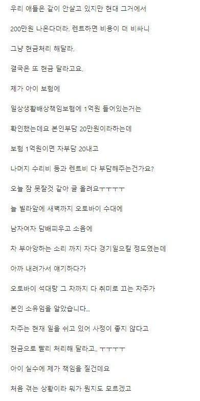 차주가 견적낸게 2100만원인데 어떡하냐고 올린 아이 엄마