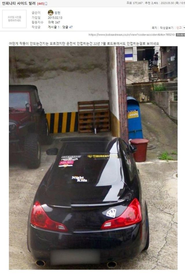 보배드림에서 얼마전에 이거랑 비슷한 인피니티 차주건으로 존나 불탄적 있어서 개빡친 상태임….