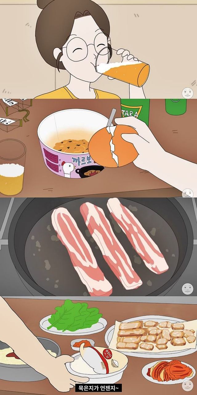 ‘퇴근 후 혼밥러’는 제목 그대로 퇴근 후 먹방을 애니메이션화한 콘텐츠다. 직장인 남녀주인공 이세빈, 김성혁이 번갈아 나오면서 삼겹살, 초밥, 치킨, 피자 등 보기만 해도 군침이 도는 음식을 먹는다.
