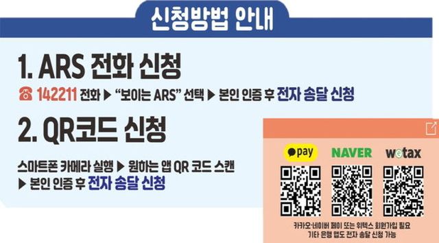 전자송달 신청 시 고지서 1매당 500원의 세액공제 혜택이 제공되고, 자동이체 시 500원이 추가 공제된다. 공제 혜택뿐만 아니라 고지서를 모바일로 정확하게 송달받고 one-stop으로 확인, 납부도 할 수 있다.
