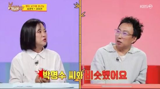 (엑스포츠뉴스 원민순 기자) 김숙이 과거 KBS 희극인실 내 유재석의 인기가 박명수와 비슷했었다고 밝혔다.