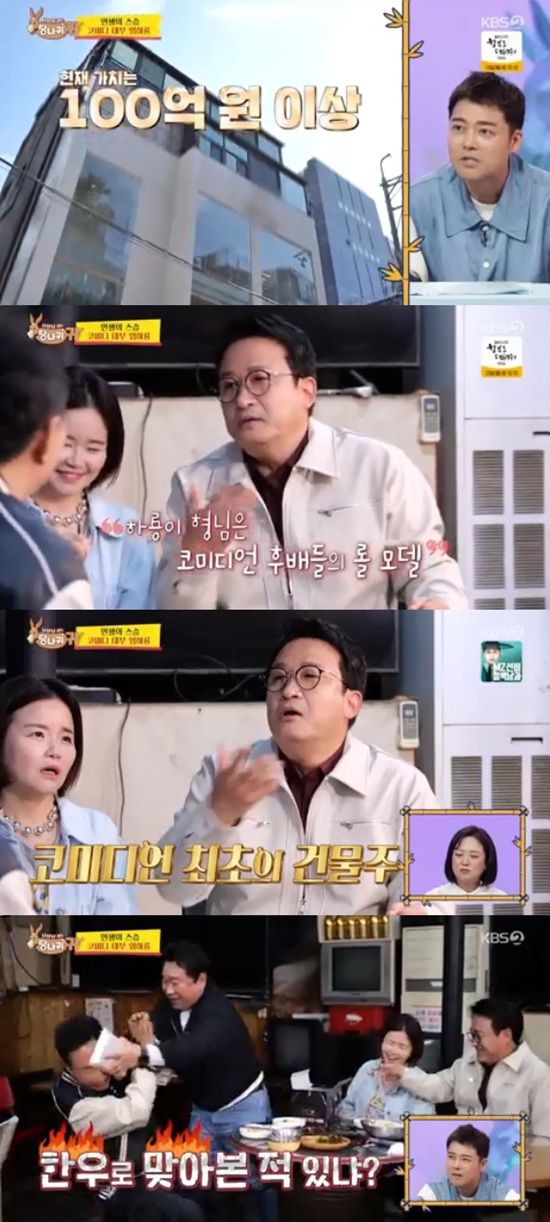 박명수와 서경석은 임하룡이 91년도에 4억에 매입했던 압구정 건물이 현재 100억 이상의 가치를 갖게 됐다며 코미디언 최초의 건물주라는 사실을 알려줬다.