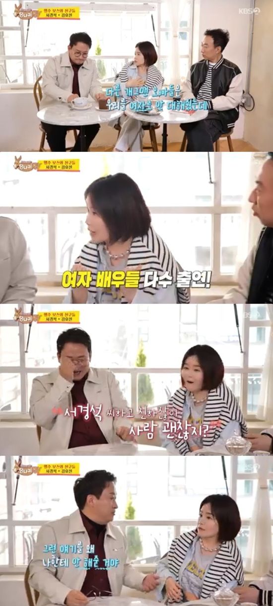 김효진은 최근 '울 엄마'의 조혜련, 서경석이 나왔던 것을 언급하면서 "사람들이 나한테 '넌 왜 안 나오는 거냐'고 했다. 오빠가 날 챙겼어야지"라고 서운함을 드러냈다.