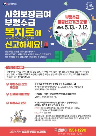 [와이뉴스] 보건복지부는 5월 13일부터 7월 12일까지 2개월간 사회보장급여 부정수급 집중신고기간을 운영한다고 밝혔다.