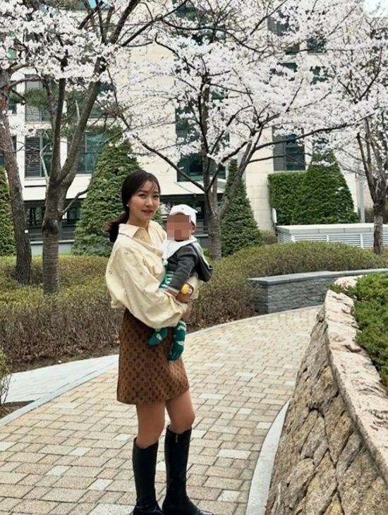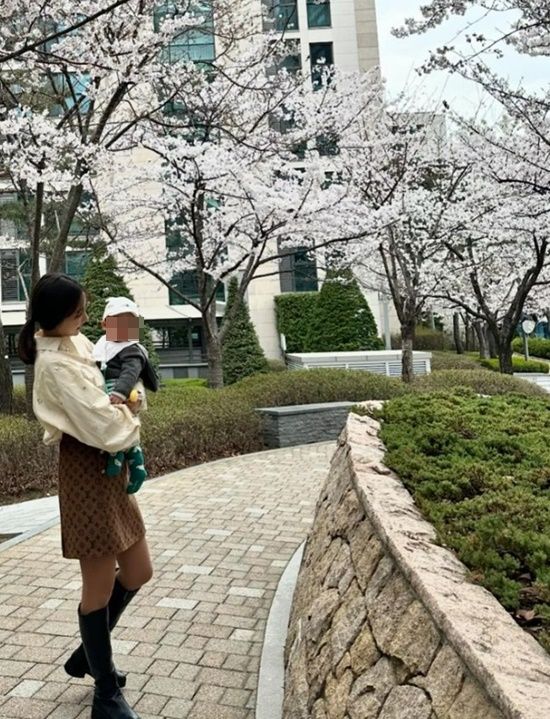 공개된 사진에는 이인혜가 벚꽃이 활짝 핀 나무 아래에서 지난 해 12월 태어난 아들을 안고 카메라를 향해 미소짓고 있는 모습이 담겨 있다.