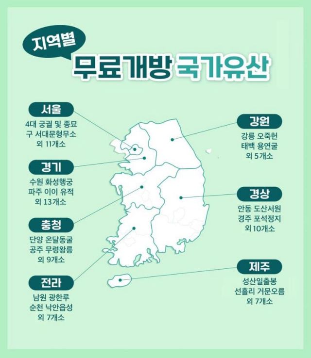 문화재청이 전국 76곳의 국가유산을 무료로 개방한다. / 문화재청