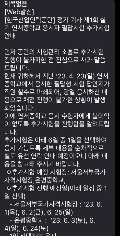 내 시험지가 갈렸단다. 그래서 시험을 다시 봐야한단다.
