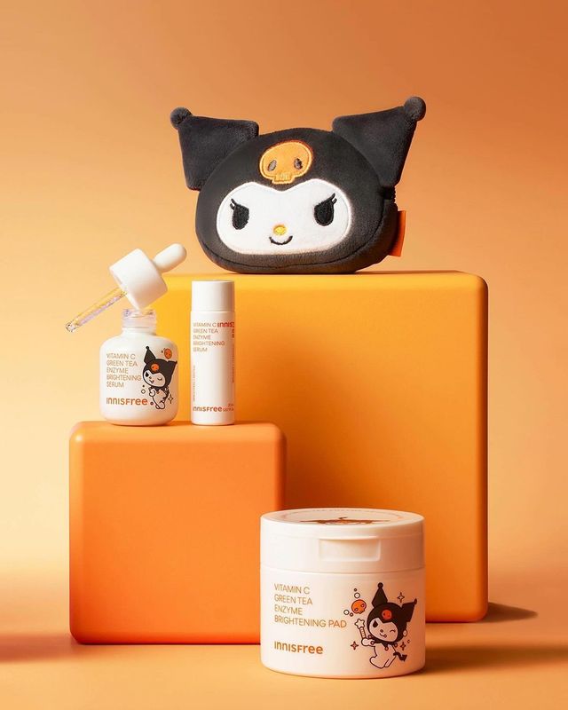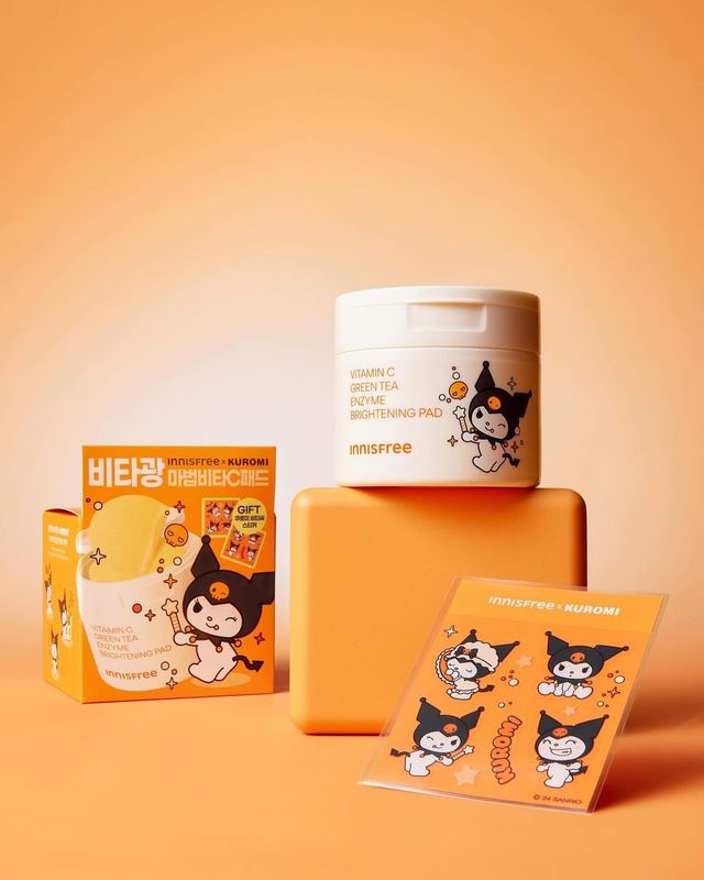 먼저, 악동 쿠로미와 함께한 이니스프리의 '비타C 그린티 엔자임 잡티 토닝 세럼과 패드'는 각질과 잡티에 반응해, 칙칙한 피부를 밝혀 일주일만에 환한 톤을 되찾게 해주는, 일명 ‘비타C 7일 톤업 세럼’으로 유명하다. 그 이유는 성분 중 각질 케어에 탁월한 ‘그린티 엔자임’과 비타민이 만나 비타민C의 흡수력이 최대 160%까지 상승해 피부를 맑게 만들어주기 때문이라고. 더불어 저자극 고효능으로 트러블 민감성 피부까지 안전하게 사용 가능하다고 한다. 다음날 중요한 일정이 있다면 이니스프리의 비타C 세럼과 패드를 사용해 홈케어 비타 토닝을 하고 잠을 청해보자! 다음날 아침에 맑고 하얀 피부를 얻을 수 있을 것! 참고로 세럼 패키지에는 쿠로미 미니 파우치가 들어있으니 품절되기 전에 겟해보자!