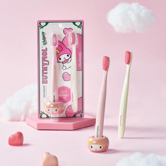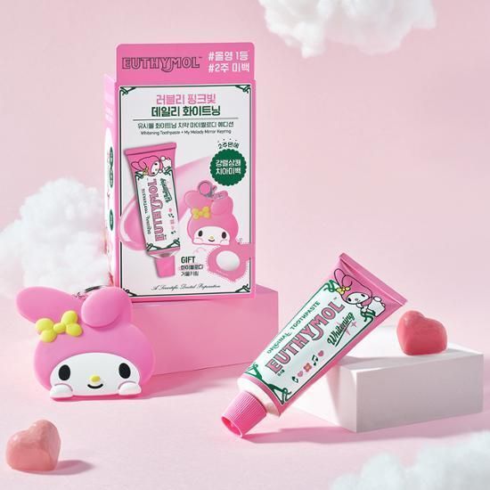 한편, 화이트닝 기능성 치약으로 유명한 유시몰은 쿠로미 뿐만 아니라 마이멜로디까지 협업해 상큼함을 더했다. 먼저 산리오 캐릭터즈와 함께한 화이트닝 에디션은 상큼한 핑크&퍼플 치약과 칫솔로 구성되어 있으며, 탁월한 화이트닝 기능이 특징! 유시몰의 치약을 2주간 사용하면 이전보다 9.6배 미백 효과 및 24시간 착색 보호막으로 착색 억제부터 제거 효과까지 있다고. 그리고 협업 칫솔은 타사의 일반적인 칫솔보다 길게 제작되어, 구석구석 넓은 범위로 닦이기 때문에 오래된 프라그를 4.6배 더 강력하게 제거해준다. 현재 올리브영에서 해당 에디션들을 구매하면 특급 굿즈까지 얻을 수 있다. 치약 세트의 경우 쿠로미&마이멜로디 거울 키링이, 칫솔 세트에는 쿠로미&마이멜로디 칫솔 스탠드가 포함되어 있다.