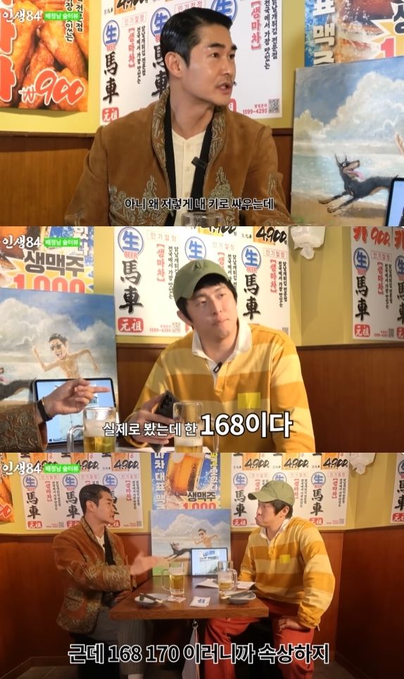 배정남은 "솔직히 나도 180cm가 되고 싶다"며 "속이긴 싫다, 대신 내 키로만 봐 달라. 168cm, 170cm 이러니까 속상하다"고 고백했다.