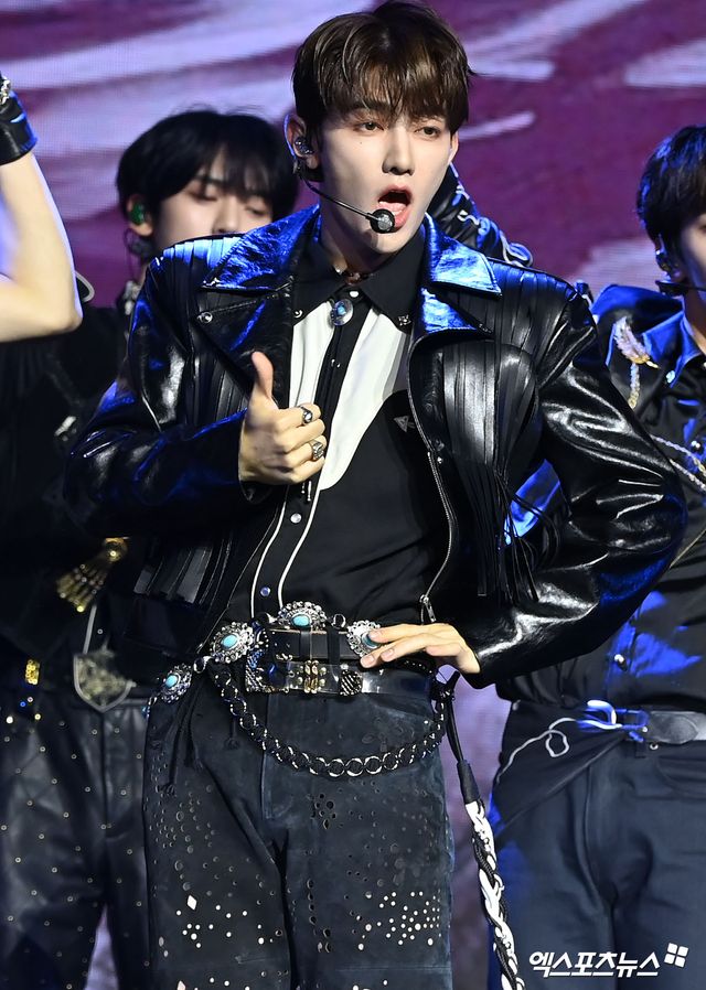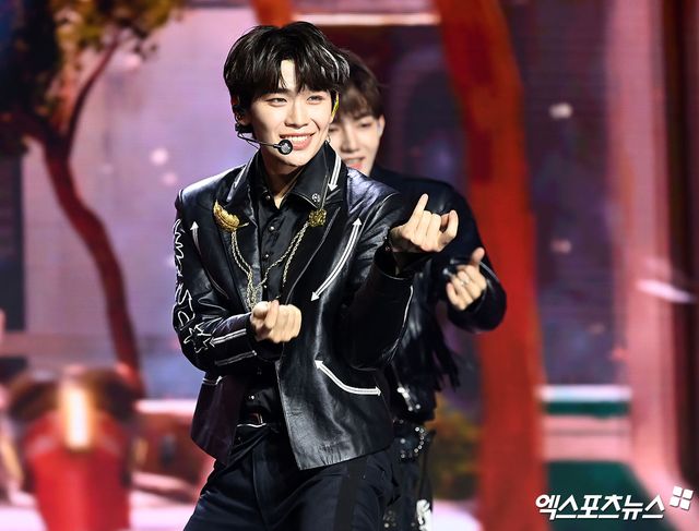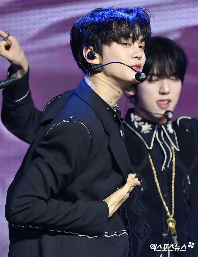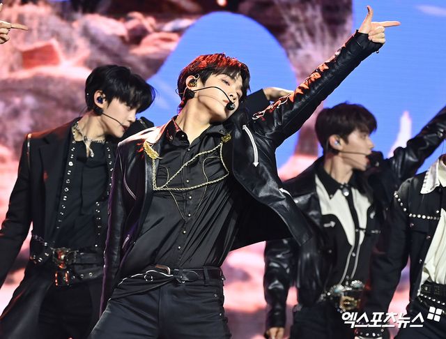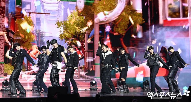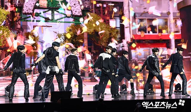 이날 쇼케이스에 참석한 제로베이스원이 멋진 공연을 선보이고 있다.
