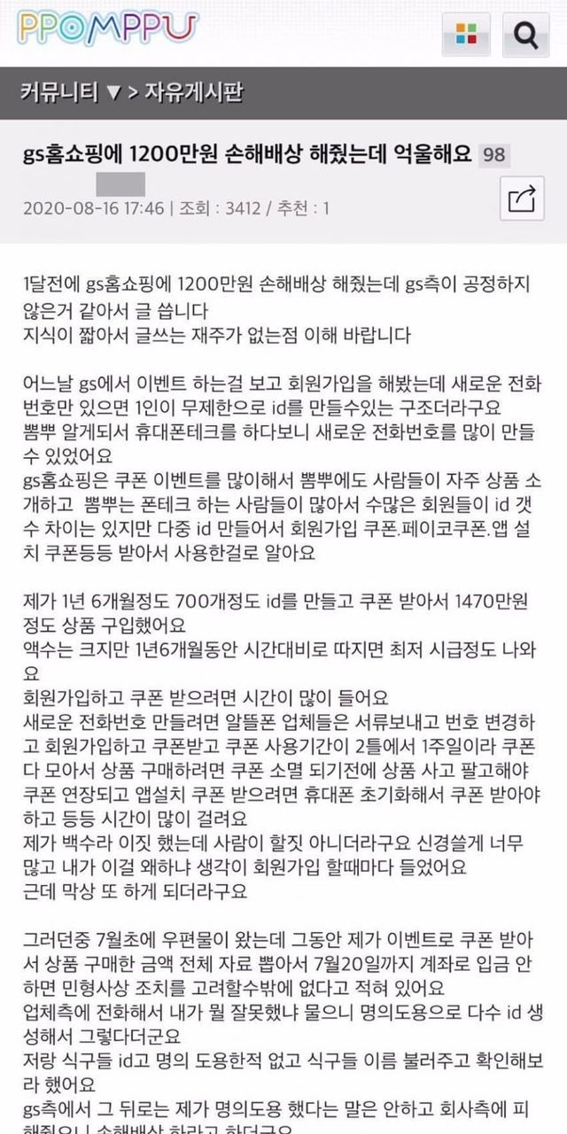 1. gs홈쇼핑 아이디 700개 정도 생성하여 1400만원 가량 이득봄