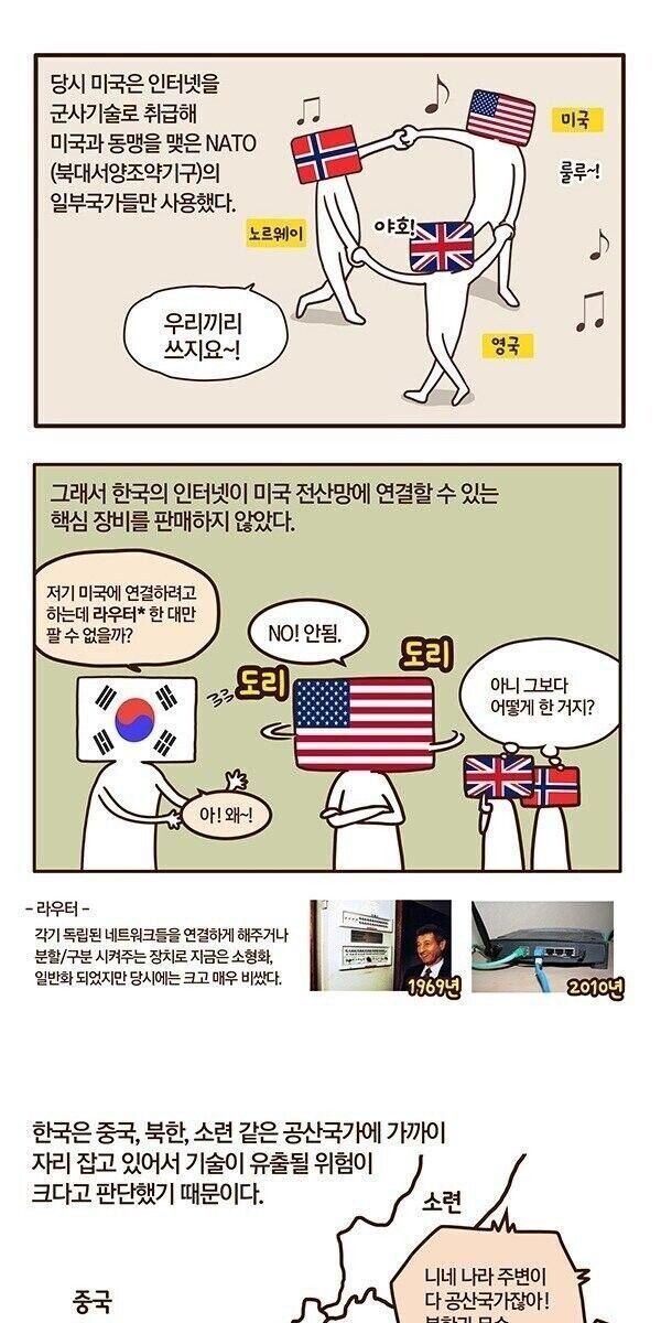 한국 최초의 사례이자 전세계에서 2번째로 인터넷 구축이 이루어진 국가가 됨.