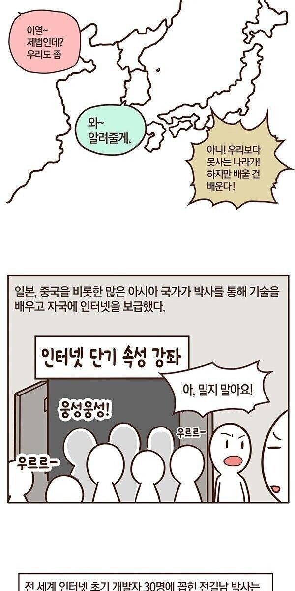 아시아 주변국에 이를 전수함으로써 인터넷의 세계적 확산에 공헌.