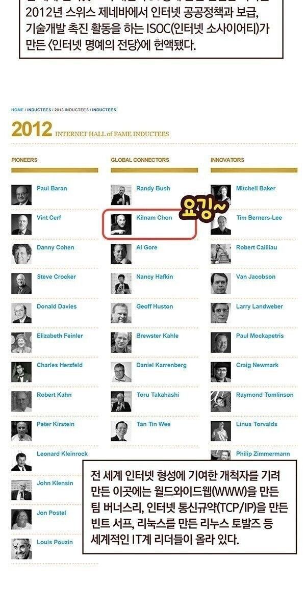 이 공로로 스위스 제네바 인터넷 명예의 전당에까지 헌액되셨음.