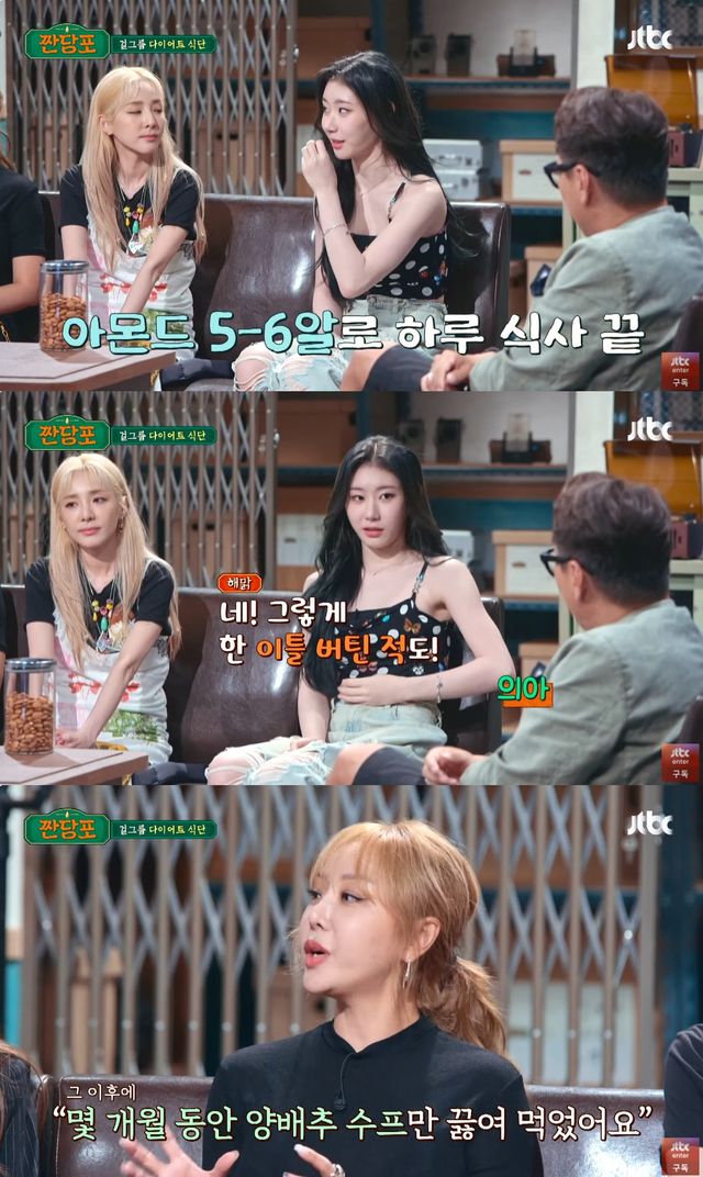 이어 "연습생 때는 몸무게 재는 날이면 제기 전 화장실에서 침을 계속 뱉는다. 새벽에 사우나에서 먹은 것도 없는데 땀을 엄청 뺐다"고 이야기해 모두를 경악케 했다.