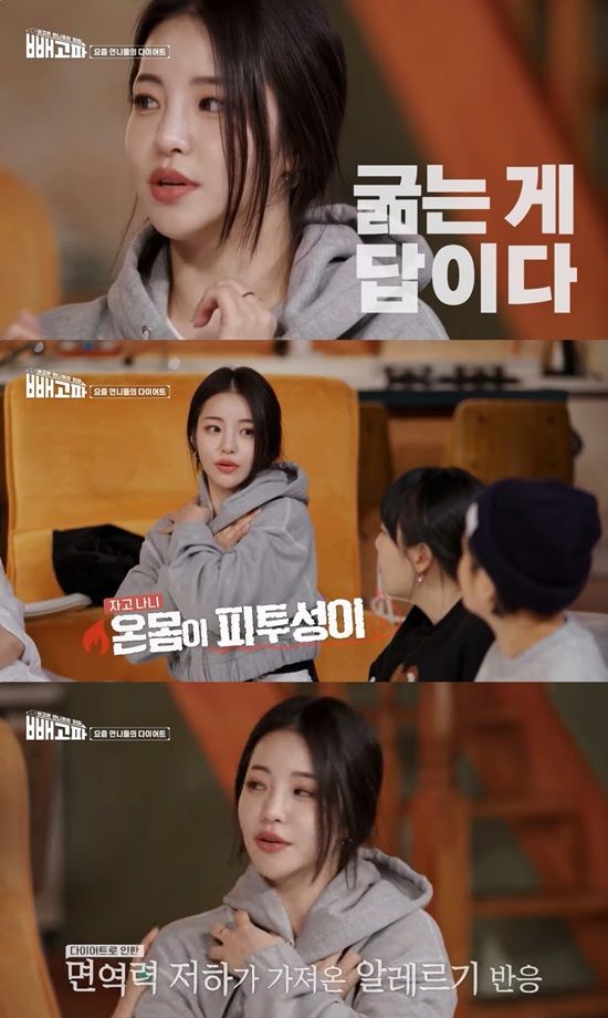 소유는 "씨스타 시절 저는 깡말랐었다. 살이 찌는 체질도 아니었다. 그런데 행사 다니며 밥 시간을 놓치고 차 안에서 간식을 먹으니 살이 확 쪘다"며 "그때 몸무게에 충격을 먹었다. 56kg였다. 당시 아이돌에게 상상할 수 없는 숫자"라고 설명했다.