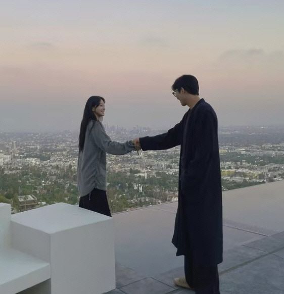 함께 공개된 사진 속에는 한예슬이 남편이 된 연인과 손을 맞잡고 있습니다. 푸른 하늘을 배경으로 서로 마주 보고 있는 두 사람의 모습에서 행복감이 느껴집니다.