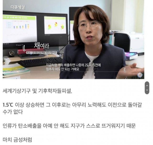 현실은 이미 배출된 탄소가 너무많고 영구동토층 때문에 탄소감축따위로는 못막음.