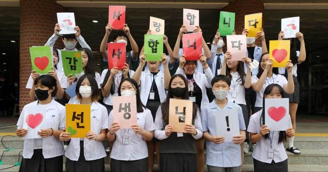 스승의 날을 앞둔 12일 서울 영등포구 영원중학교에서 재학생들이 선생님들께 감사의 마음을 담은 글귀를 들고 있다. 2023.5.12/뉴스1