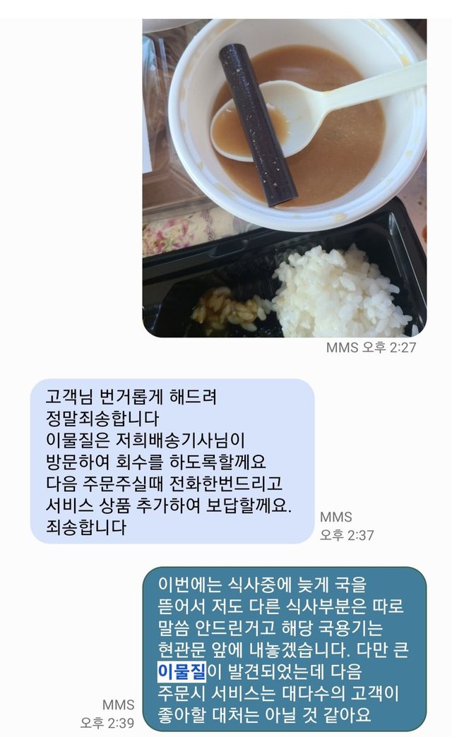 항상 배달에나 음식에 문제 있으면