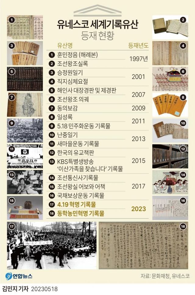 한국 근현대사 주요 기록물인 4·19혁명 기록물, 동학농민혁명 기록물 등