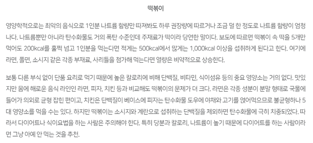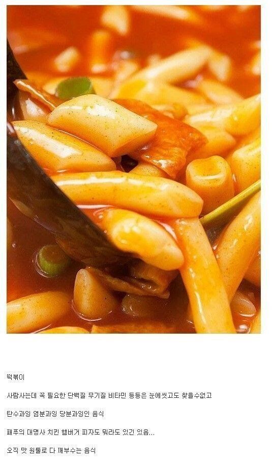 =>떡볶이에 들어가는 어묵은 전분덩어리라 탄수화물 폭탄.