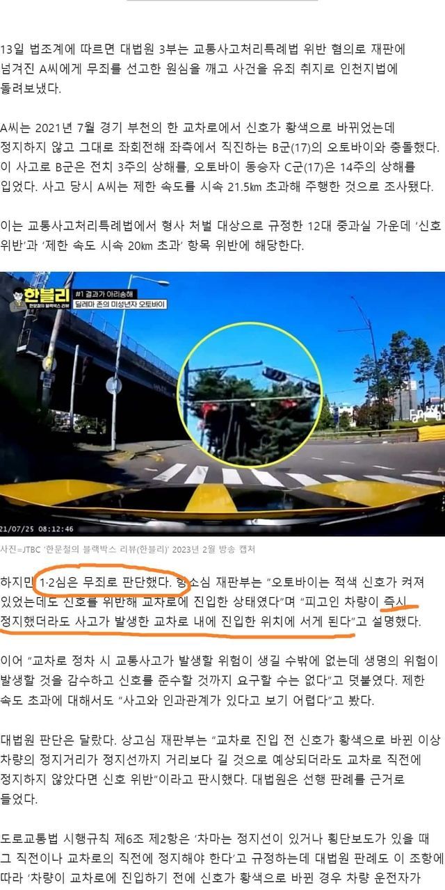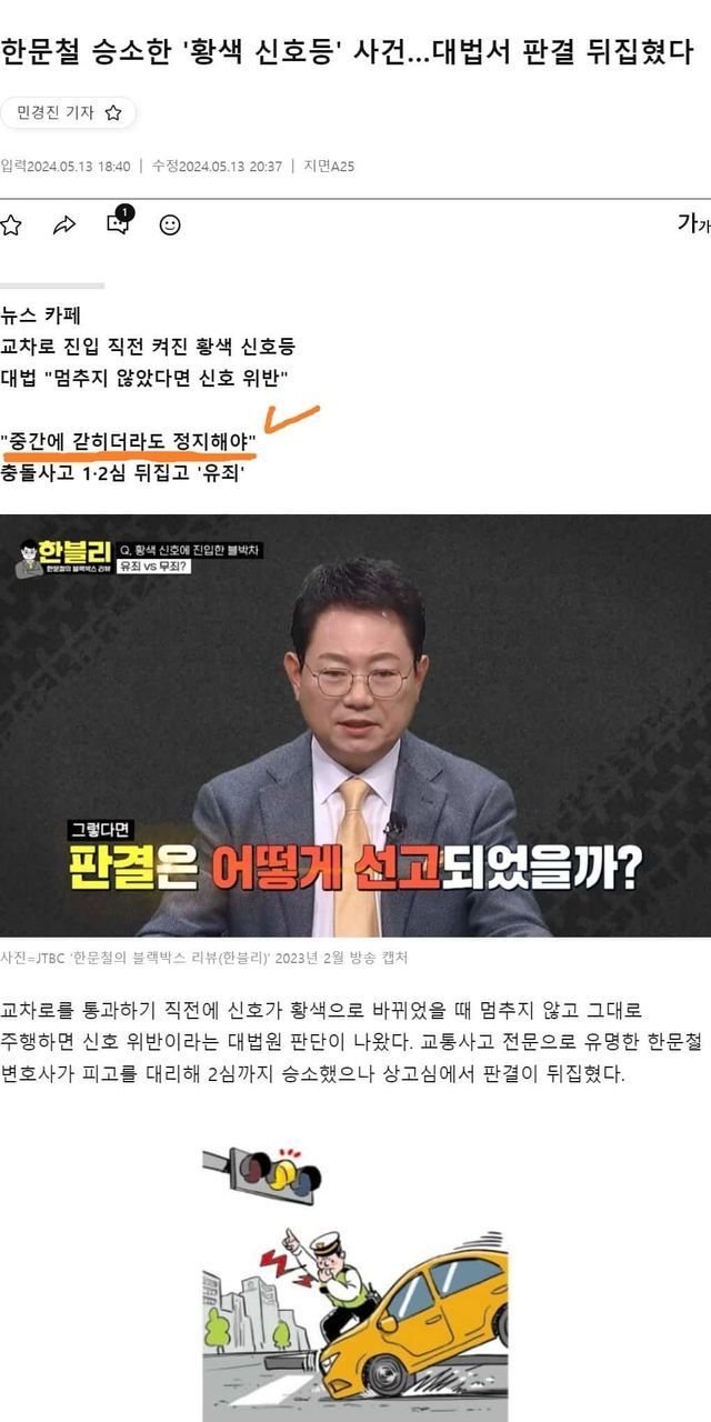 한문철 승소한 황색불 딜레마 사건, 대법원 : 안돼 바꿀꺼야 돌아가ㄷㄷㄷ