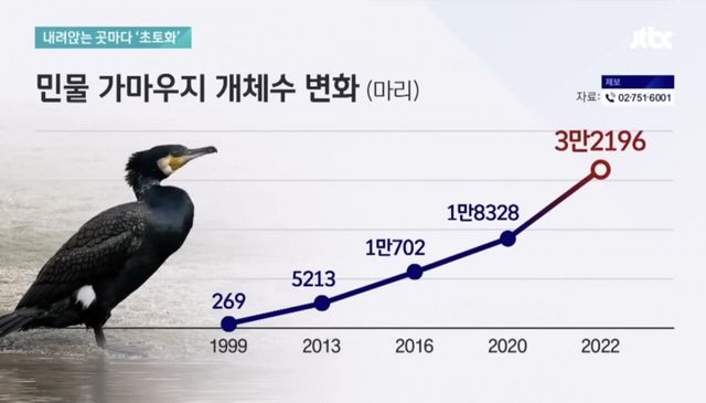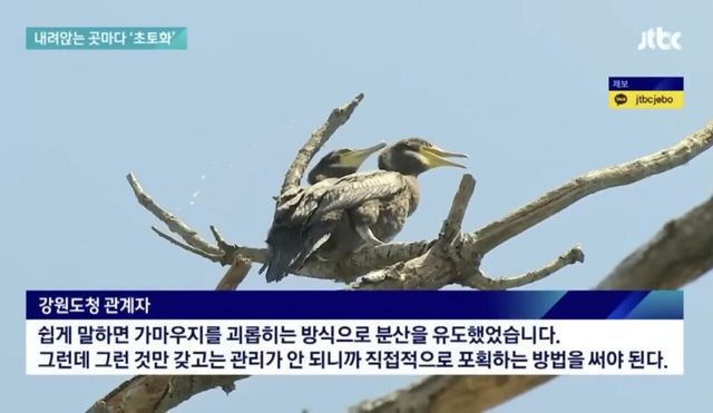 전국적으로 가마우지 개체수가 늘고 피해가 커져 비살생적인 방식으로 조치를 취했지만 가마우지는 더 늘고 있는 상황