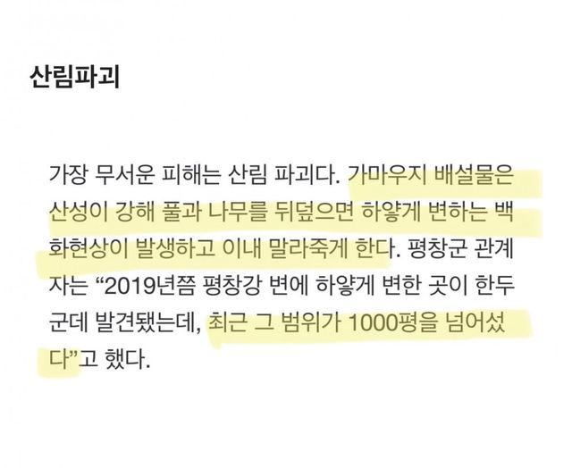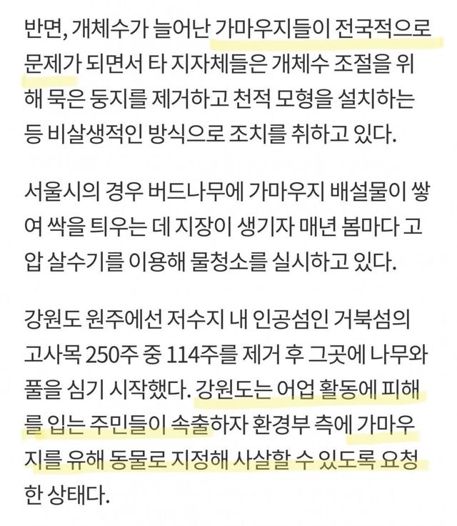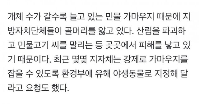 해마다 개체수가 늘어서 있어서 대책이 필요한 상황