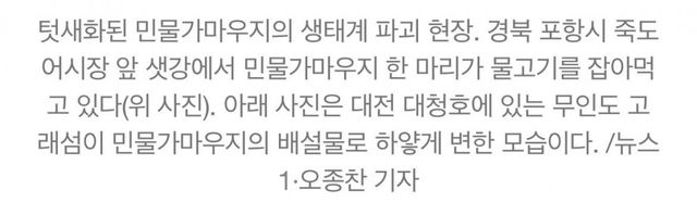 민물가마우지의 배설물로 인한 산림파괴와 토종 물고기들의 개체수 감소