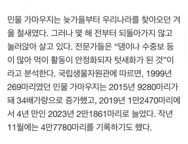 과거 2백마리에서 3만으로 개체수 증가.