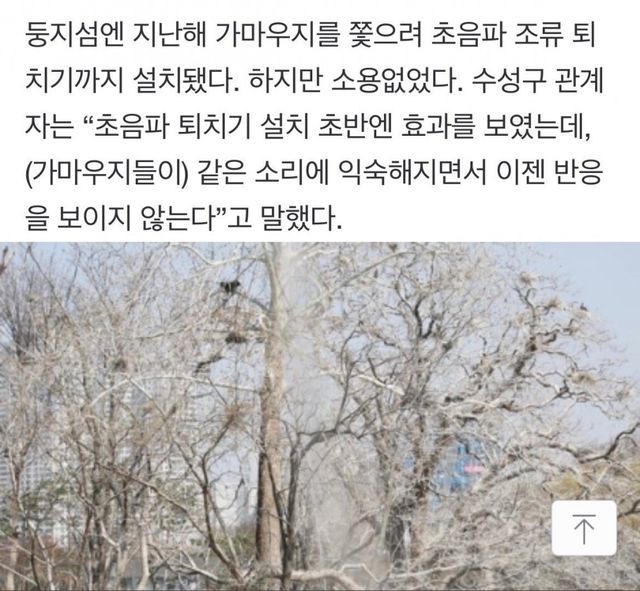 가마우지 배설문엔 요산 성분이 많아 나무와 풀을 죽이고 토양도 황폐화시킴