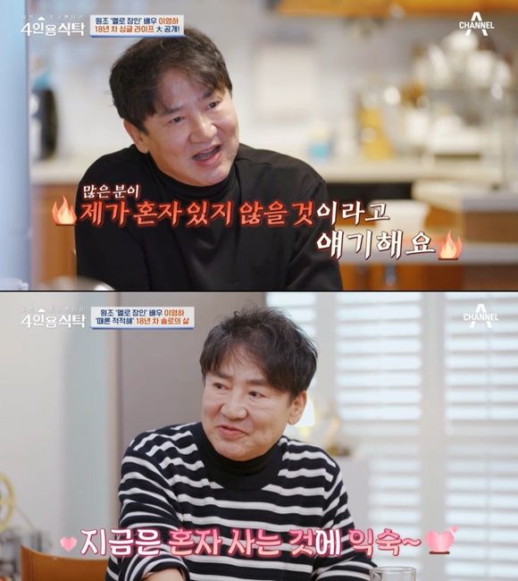 또 이영하는 "재혼이라는 걸 한 번도 생각해 본 적이 없다"고 밝혔다. 그는 '혼자 지내다 보면 외롭지 않냐'는 질문을 받고 "솔직히 외로울 시간이 없다. 혼자 사는 것에 편하다. 익숙해졌다"고 답했다. 다만 그는 "적적하지 않은 건 아니라서 잘 때 TV를 켜고 잔다. 사람 소리가 안정감을 준다"고 말했다.