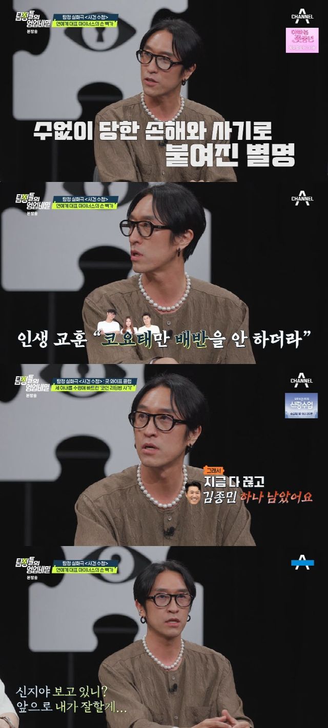 지난 13일 오후 9시 30분 채널A ‘탐정들의 영업비밀’이 방송된 가운데, 이날 게스트로 출연한 빽가는 ‘연예계 마이너스 손(?)’으로 불리는 이유를 해명했다.