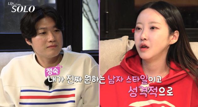 또한, 정숙은 “자기소개 진짜 인상 깊게 들었다. 그래서 진짜 내 스타일이라고 생각했다”고 대놓고 호감을 표현하더니, “너랑 있으면 그 자리 자체가 즐겁고 행복하다. 네 외모가 좋다. 너의 자기소개가 내 마음을 거스른 게 없었다”라고 영호를 ‘무한 칭찬 감옥’에 가둔다.