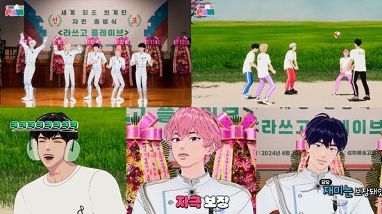 오늘 14일 티저가 공개되는 첫 에피소드는 ‘세계 최초 외계인 자컨 출범식’이라는 주제로 진행된다. 1회인 만큼 출범식을 개최, 플레이브 멤버들의 팀워크를 강화하기 위한 ‘라쓰고 단합대회’ 코너를 진행한다. 코너 속 플레이브는 다양한 게임을 진행하며 유쾌한 시간을 갖는다. 배구공을 활용한 단합력 측정을 통해 서로간의 마음이 얼마나 통하고 있는지를 테스트했는데, 기상천외한 방법으로 미션을 성공하여 제작진을 당황시켰다는 후문이다.