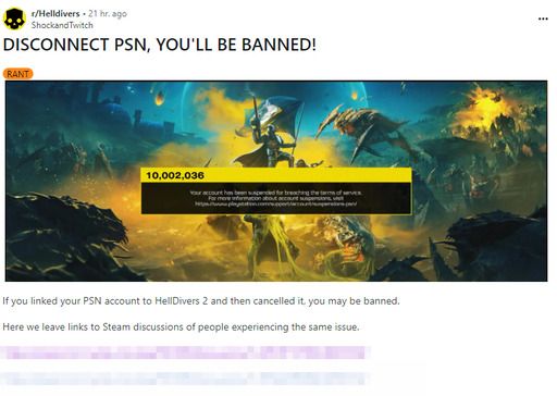 앞서 헬다이버즈2의 개발사 에로우헤드 게임스튜디오와 배급사 플레이스테이션은 보안 강화를 위해 헬다이버즈2를 스팀에서 구매한 게이머들에게 스팀 계정과 PSN 계정 연동을 추진했다. 그러나 헬다이버즈2가 판매된 국가 중에는 PSN 서비스가 제공되지 않는 곳이 더 많아 문제가 발생했다. 게이머들이 게임 평가를 '부정적'으로 떨어트리는 등 항의하자 해당 계획은 전면 철회됐다.