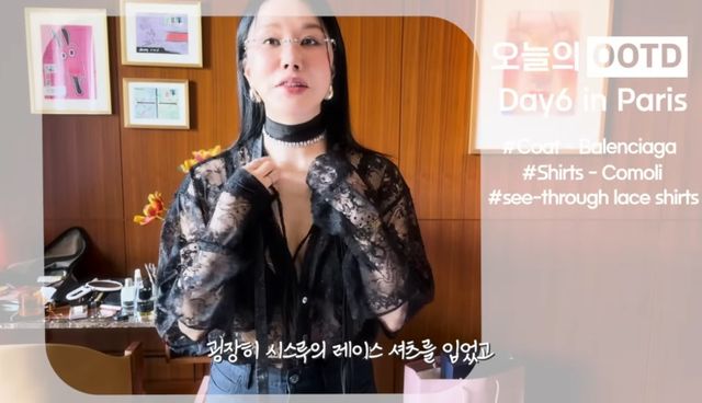 이어 오버사이즈 셔츠를 보여준 뒤, 그는 몸이 비치는 시스루 의상을 과감하게 공개했다. 그는 53세라고 믿기지 않는 패션을 선보여 놀라움을 자아냈다.