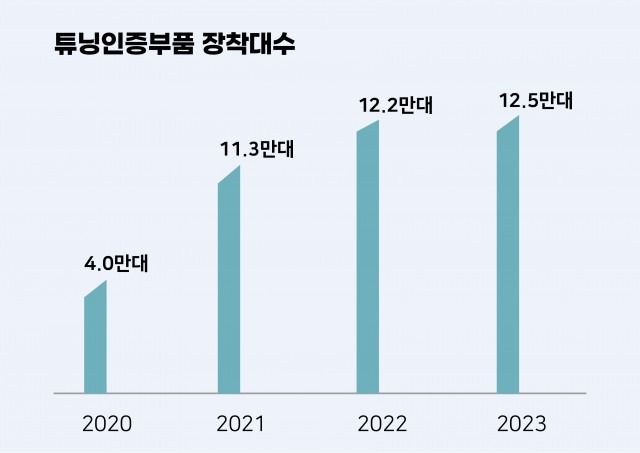 특히 해당 제도 도입 후 2023년까지 튜닝인증부품의 누적 판매 건수는 40만 건 이상, 관련 시장 규모는 연간 1000억원대로 가파른 성장세를 보이고 있다. 또한 안전성과 성능이 우수한 튜닝인증부품에 대한 소비자 선호도가 높아지면서 튜닝부품인증 시장은 더욱 확대될 것으로 전망된다.