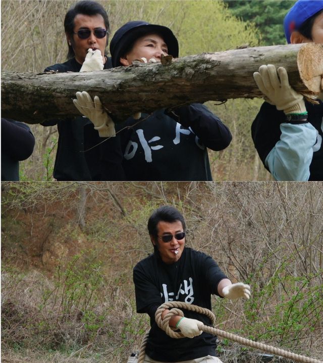 이를 본 안문숙은 곧바로 불을 지피며 야생에 적응하는 모습을 보인다. 가만히 서서 감탄만 하던 김보성은 어느새 그녀의 진두지휘 아래 통나무 자르기에 돌입하고, 헛방 톱질로 체력이 방전되는 등 허당 면모를 보인다.