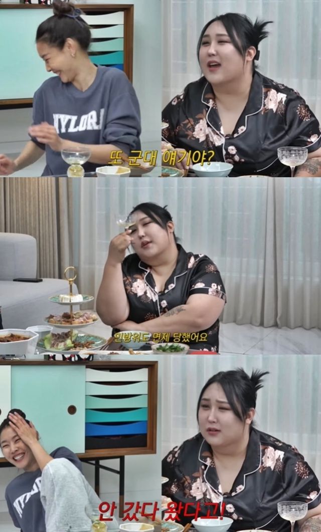 이에 풍자는 "또 군대 얘기냐? 안 갔다 왔다고!"라고 고함을 질렀다.