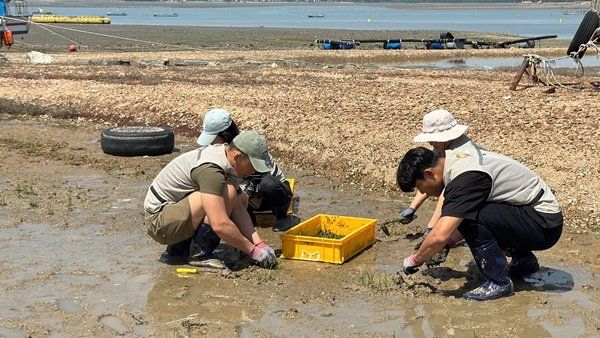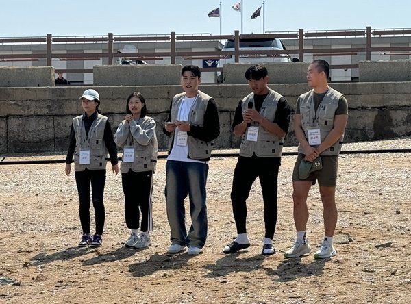 고정우, 김채원, 최향, 이장군, 김상욱은 지난 10일 오후 화성시 제부리에서 진행된 '경기바다 ESG 정화 활동’에 참여했다. 이들은 해양 환경을 정화하기 위해 온실가스 감축의 새로운 방법으로 각광받는 염생식물을 심고 해양 쓰레기를 수거하는 등의 환경 정화 활동에 힘을 보탰다.
