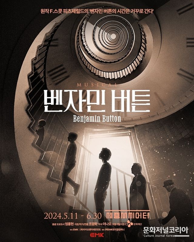 한편, EMK뮤지컬컴퍼니가 새롭게 선보이는 창작 뮤지컬 ‘벤자민 버튼’은 브래드 피트 주연의 영화로도 유명한 F.스콧 피츠제럴드의 소설 ‘벤자민 버튼의 시간은 거꾸로 간다’를 원작으로 한다.